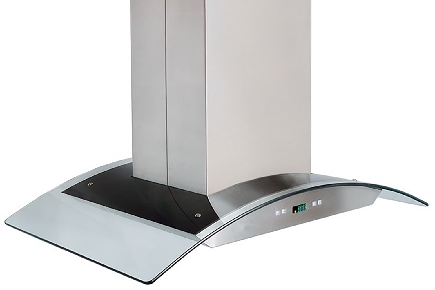 The Galaxy island kitchen range hood is manufactured with seamless, durable and easy to clean stainless steel. It is equipped with professional style stainless steel baffle grease filters that can be cleaned in the dishwasher. It features LED lights for increased visibility and reduced power consumption. This range hood includes an all-metal fan for better durability. The fan offers suction of up to 900 CFM with a sound level of 6 sones at maximum power, offering better efficiency, output and tranquility. It has a four-speeds and two electronic control panels (on each side) with automatic shutoff. The unit is ventilated by a vertical chimney nd fits ceilings that are 8 to 9 feet. Finally, the Galaxy range hood by Turin is suitable for any type of gas or electric cooker.
