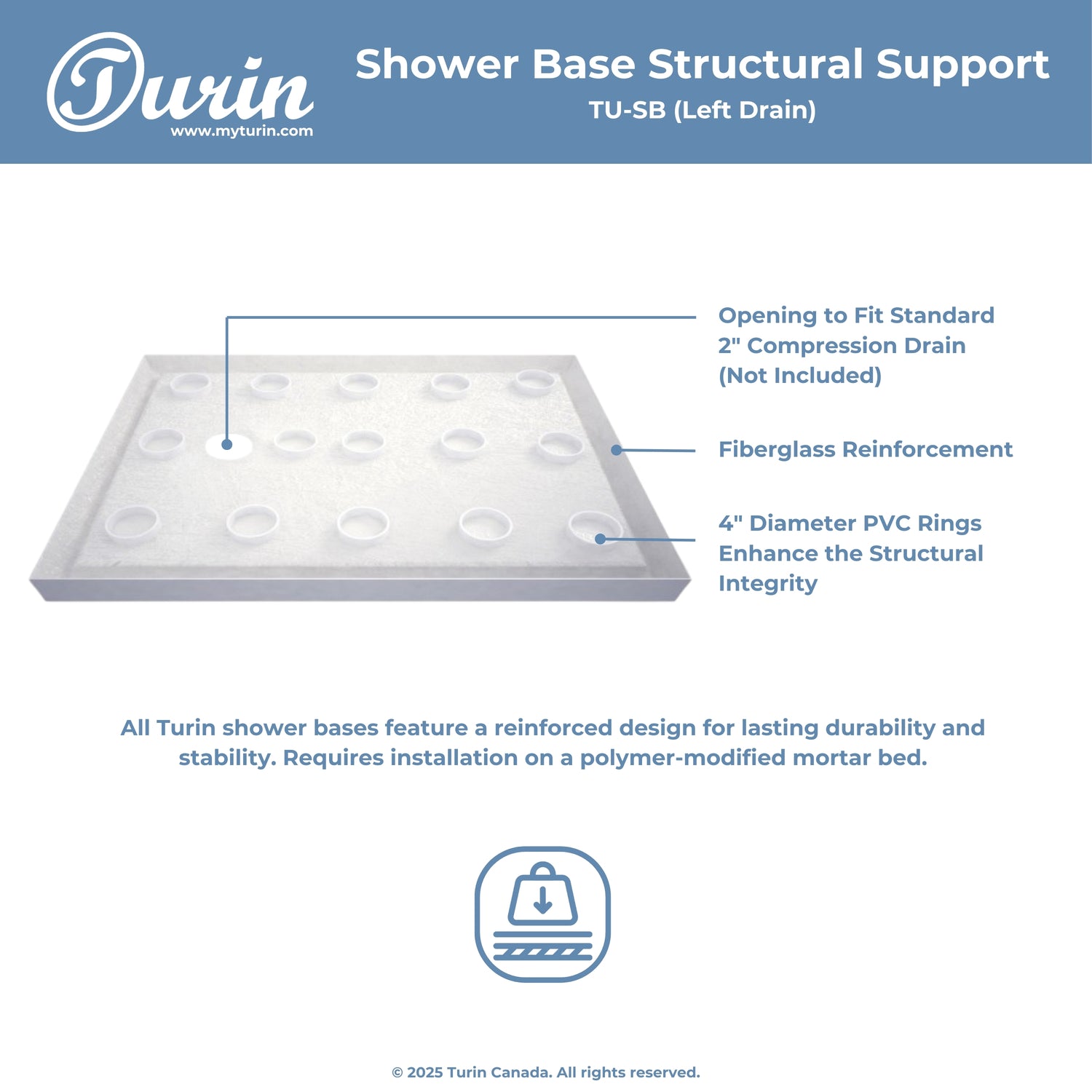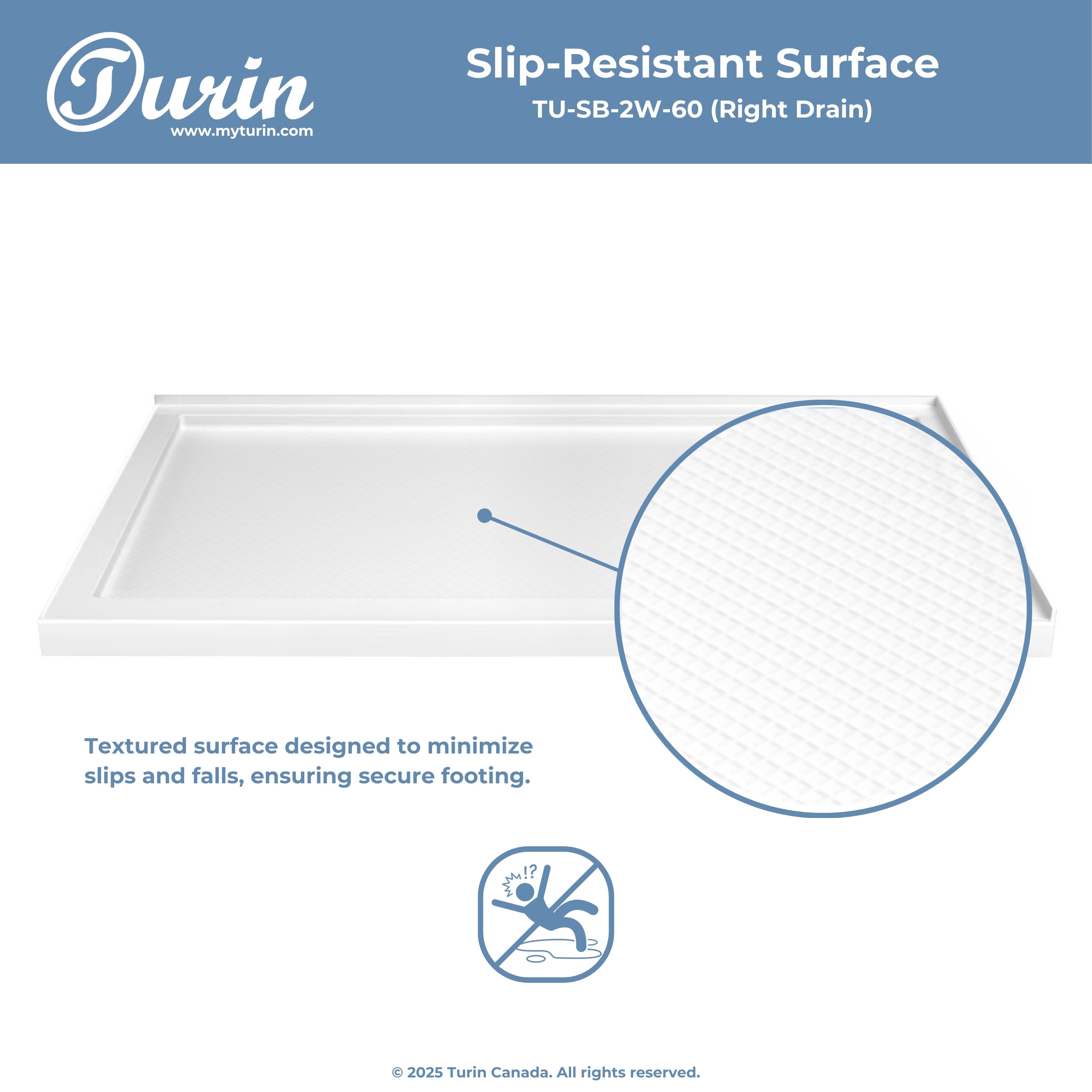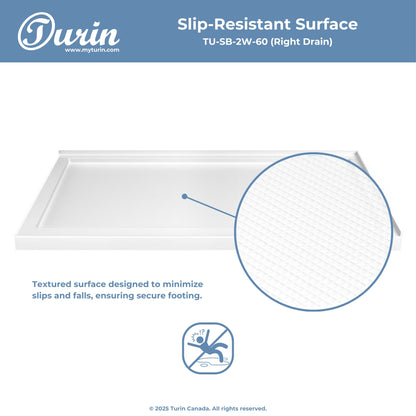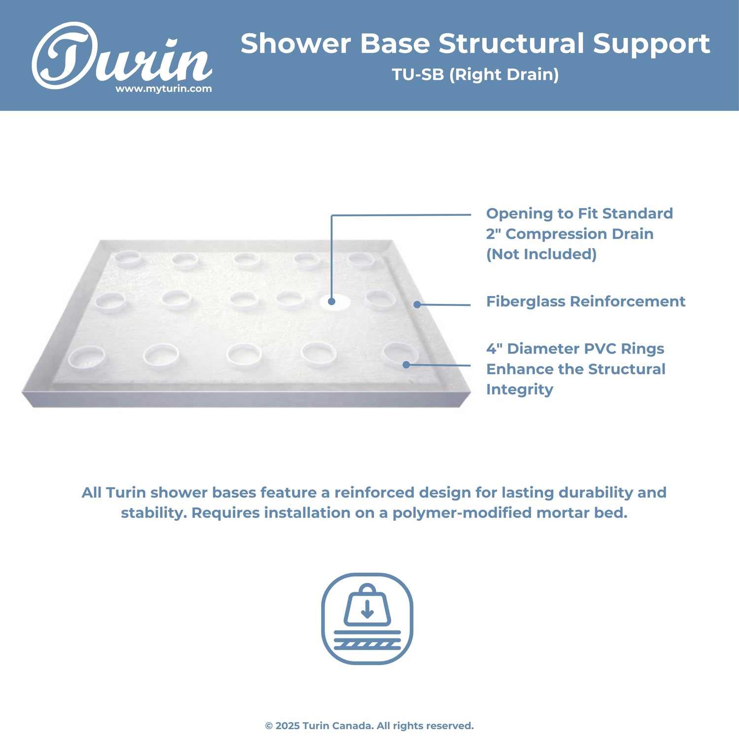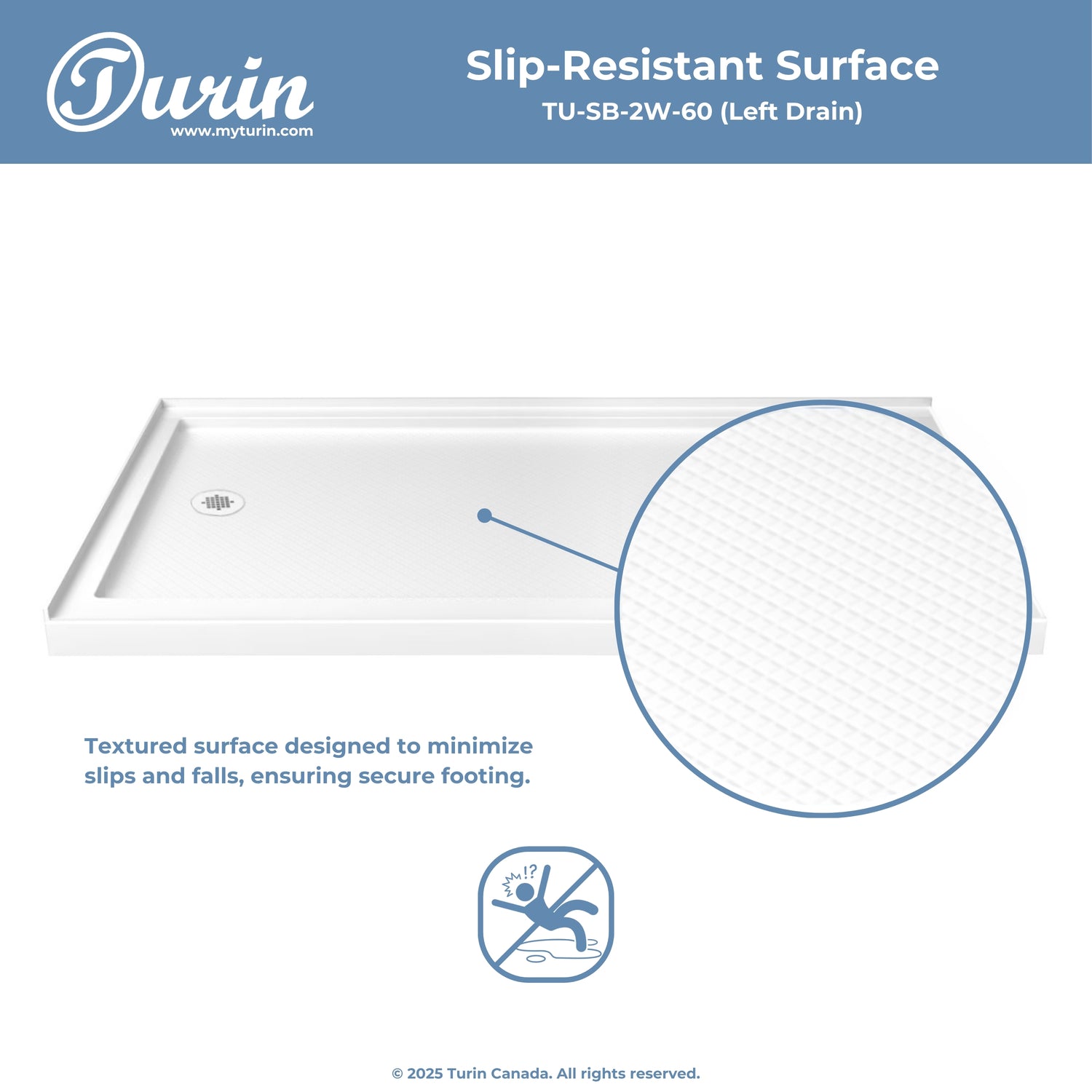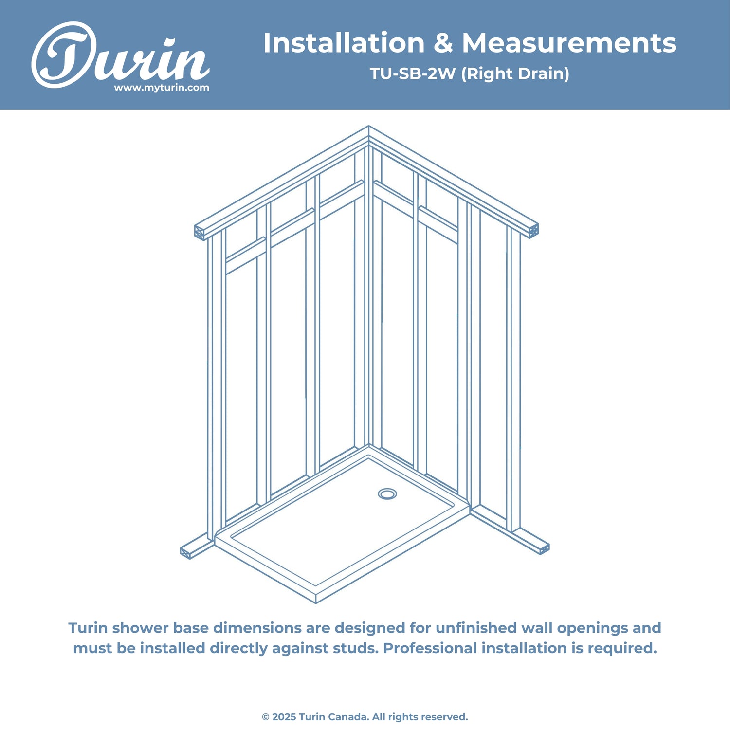 The Turin LowStep Corner Shower Base combines a low-profile design with corner installation for a compact, modern solution. With a threshold height of 2.5 inches, this shower base offers easy access while maintaining its sleek design. Ideal for smaller bathrooms or unique spaces, it provides a stylish and practical showering experience. Integrated tile flanges, positioned against surrounding walls, ensure leak-proof tiling and simplify installation. The slip-resistant surface prioritizes safety, providing dependable traction for all users. Crafted from high-quality, durable acrylic that resists scratches and stains for lasting performance and beauty.
